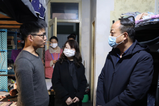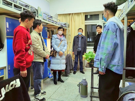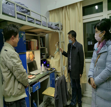 新学期伊始,为更好地了解新葡萄官网学生返校后学习生活情况,传达学校和学院的关怀,提高同学们的安全意识,确保新学期各项工作顺利开展。3月1日晚,学院党委书记刘德雄、党委副书记王宏渊、硕士生导师、本科班主任、研究生秘书和专职辅导员走访学生宿舍,关心和看望返校学生。
