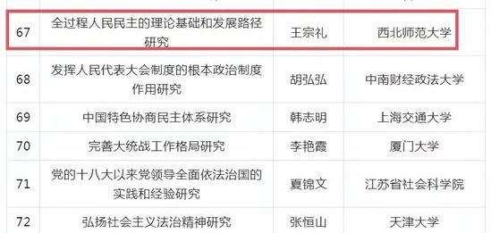 近日,全国哲学社会科学工作办公室公布了“研究阐释党的十九届六中全会精神国家社科基金重大项目立项名单,全国总共130个课题项目获得立项支持。新葡萄官网王宗礼教授作为首席专家的投标项目《全过程人民民主的理论基础和发展路径研究》经过激烈竞争获批立项,这是新葡萄官网在国家级重大科研项目由报道路上的历史性突破,也圆了多年马院全体师生员工的梦想,彰显了新葡萄官网“明道信道、守正创新”的价值追求。全院师生向王宗礼教授表示热烈祝贺。