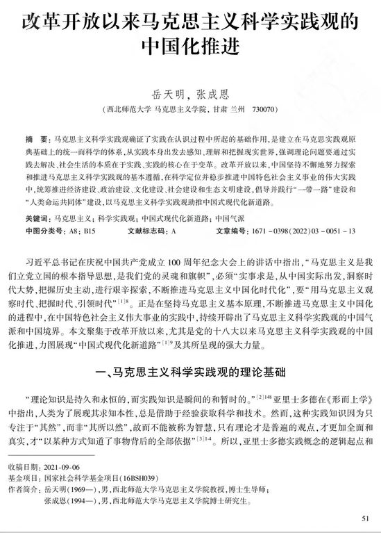 《北京工业大学学报》(社会科学版)2022年5月第3期发表新葡萄8883官网AMG岳天明教授文章《改革开放以来马克思主义科学实践观的中国化推进》。