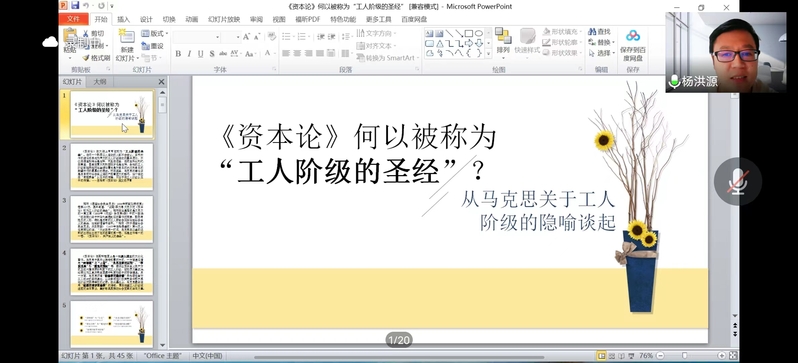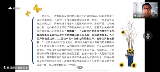 4月25日上午,中国社会科学院哲学研究所杨洪源副研究员线上为新葡萄官网师生作了题为《<资本论>何以被称为“工人阶级的圣经”?——从马克思关于工人阶级的隐喻谈起》的学术讲座,此次讲座由新葡萄8883官网AMG副院长马俊峰教授主持。