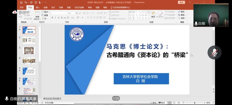 5月5日上午,吉林大学白刚教授线上为新葡萄官网师生作了题为《马克思 <博士论文> :古希腊通向 <资本论> 的桥梁》的学术报告。本次线上讲座由新葡萄8883官网AMG副院长马俊峰教授主持。