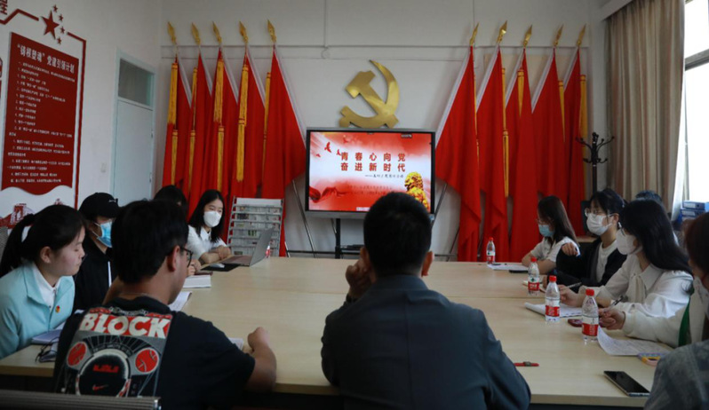 为庆祝中国共产主义青年团成立100周年,纪念五四运动103周年,号召广大青年以昂扬向上的姿态迎接党的二十大,引导广大青年团员厚植爱党、爱国、爱社会主义的情感,发扬“党有号召、团有行动”的优良传统,进一步弘扬和传承五四精神,增强团员的使命感、责任感和荣誉感,5月4日上午9时,新葡萄8883官网AMG于田家炳书院六楼党员活动室举行“青春心向党,奋斗新时代”主题团日活动,本次会议采用线上线下相结合的方式,由郭蓉担任主持人,赵新颖担任领学人,马院学生骨干参与学习。