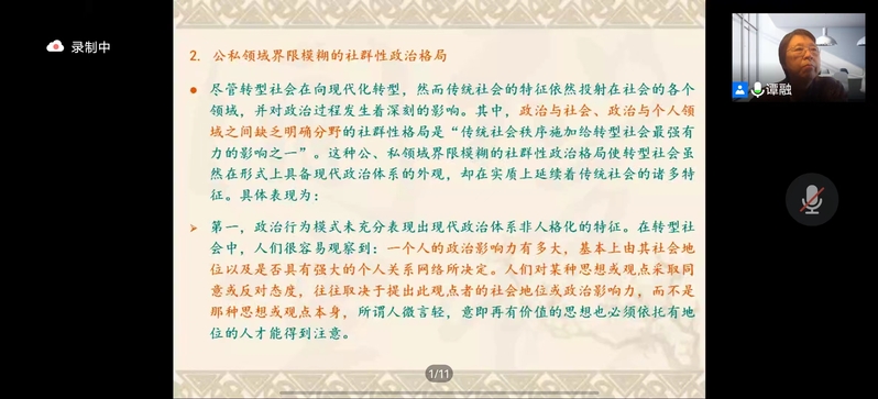 5月11日下午,南开大学谭融教授线上为新葡萄官网作了题为《关于后发国家政治转型与政治发展的理论阐释》的学术讲座,校内外师生百余人参加。