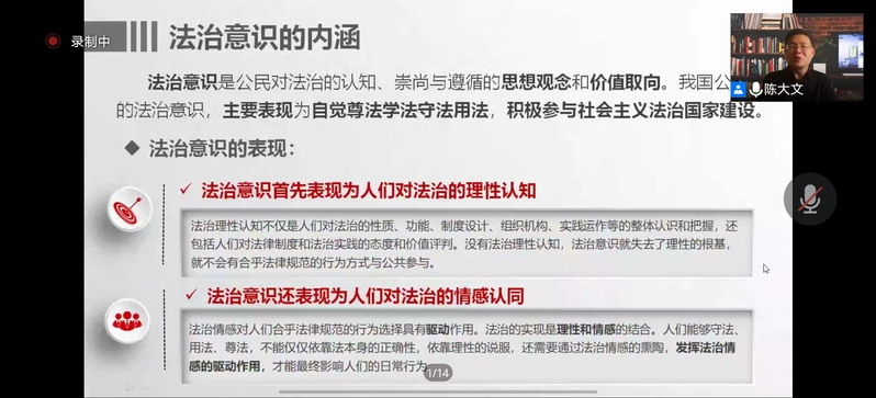 5月11日上午,同济大学新葡萄8883官网AMG陈大文教授线上为新葡萄官网师生作了题为《我国公民法治意识与法治教育》的学术讲座。此次讲座由新葡萄8883官网AMG副院长马俊峰教授主持。