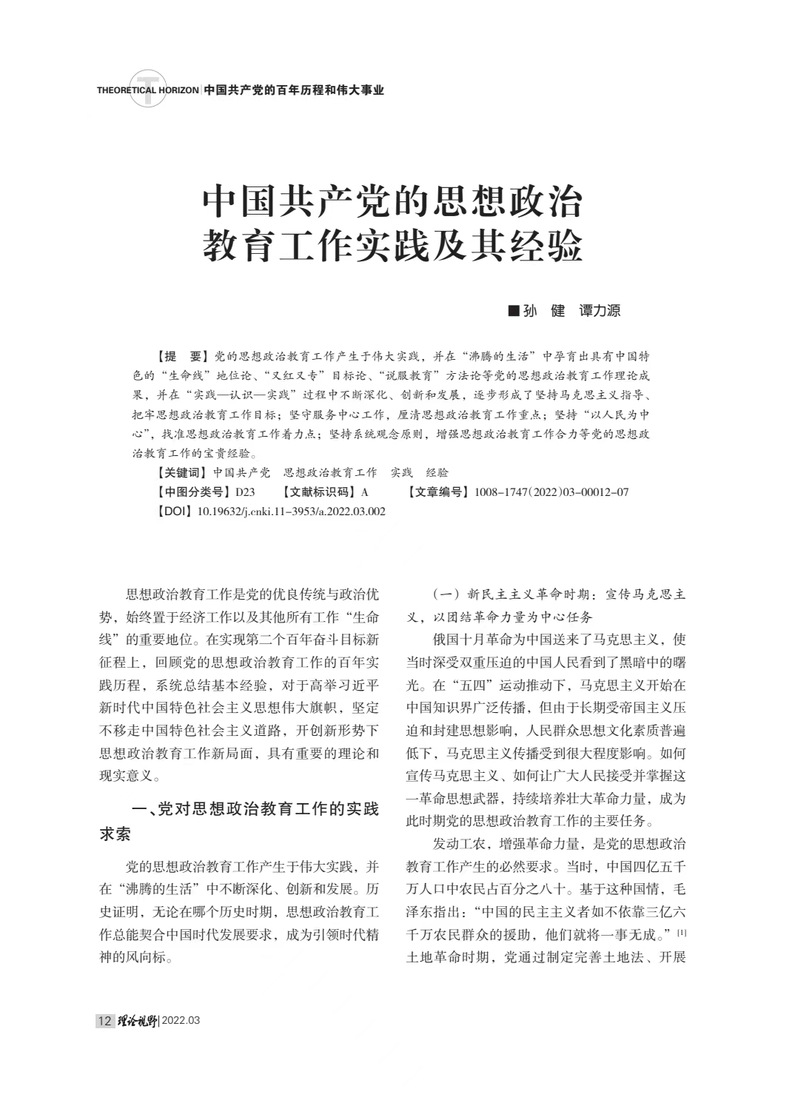 《理论视野》2022年第3期发表新葡萄8883官网AMG孙健教授文章《中国共产党的思想政治教育工作实践及其经验》。
