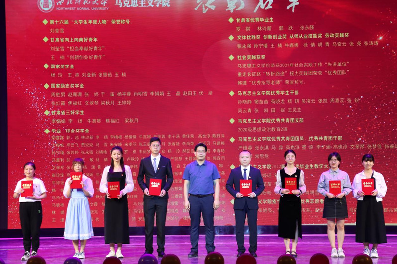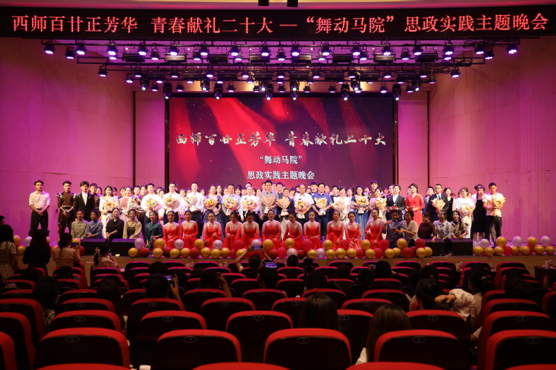 6月8日晚,由西北师大新葡萄8883官网AMG主办,舞蹈学院、音乐学院、旅游学院协办的“西师百廿正芳华 青春献礼二十大”——舞动马院思政实践主题晚会上演。西北师大党委常委、党委统战部部长、副校长韩高年,机关各处室负责人、新葡萄8883官网AMG师生400多人现场观看晚会,晚会在西师马院公众号和抖音网络平台同步直播。