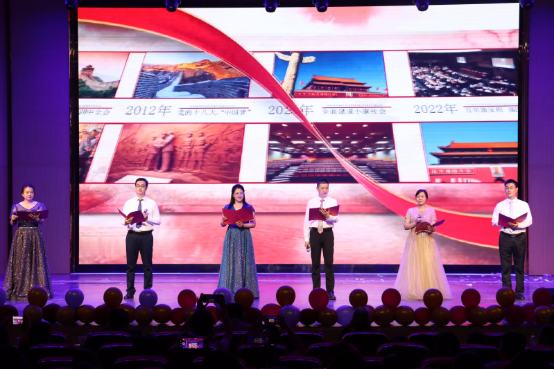 晚会在舞蹈《等你来》青春活力的舞姿中拉开序幕,分为“百廿铎声振长河”“百年芳华正青春”“奋楫百年新征程”三个篇章,展示了西师人从传承教育薪火,与国家和人民共命运的发展历程。“青春的理想在闪光,时代的乐章在回响 ……”朗诵《我的校园在黄河岸上》赓续西迁精神,传承教育薪火,表达了对母校的深情礼赞;情景剧《红色家书》,重温革命家书,从点滴字句中感悟革命先烈身上奔涌的救国救民的理想与奋争;时代各有不同,青春一脉相承。课桌舞《我们都是追梦人》纪念中国共青团成立100周年,不负韶华,只争朝夕,坚定地向心中的理想信念大步迈进;舞蹈《雨润春行图》以江南山水为题,诗意入舞,展示出祖国蓬勃发展的强劲势头;朗诵《青春中国》剪下一缕阳光献给心中的祖国,集中展示了朝气蓬勃永葆青春的伟大祖国;舞蹈《战马》一人一马,戍边战士用自己的力量,在祖国的边疆建立了牢固的防线,精彩幽默、雄伟大气,致敬边疆英雄;舞蹈《南京· 亮》追思战争的残酷,以史为鉴,开创未来,在二十大即将召开之际,我们乘着东风再次启航;新葡萄8883官网AMG教师代表朗诵《党的二十大之歌》献礼党的二十大,为进入全面建设社会主义现代化国家、向第二个百年奋斗目标进军新征程不懈奋斗;歌伴舞《灯火里的中国》余音缱绻,红歌振奋,唱响了万家灯火,国泰民安。晚会在歌曲《我和我的祖国》的歌声中落下帷幕。