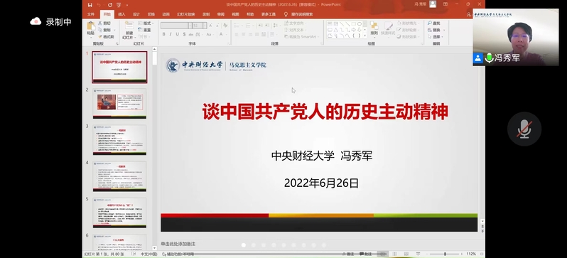6月29日上午,应新葡萄8883官网AMG邀请,中央财经大学新葡萄8883官网AMG院长冯秀军教授线上为新葡萄官网师生作了题为《谈中国共产党人的历史主动精神》的学术讲座。此次讲座由新葡萄8883官网AMG副院长马俊峰教授主持。
