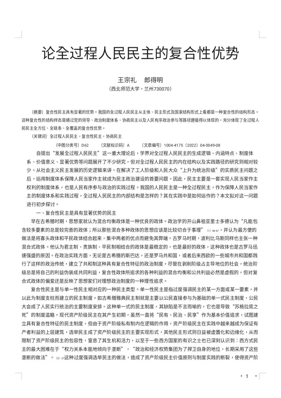 今日推文来源:《理论探索》2022年第4期发表新葡萄8883官网AMG王宗礼教授文章《论全过程人民民主的复合性优势》。