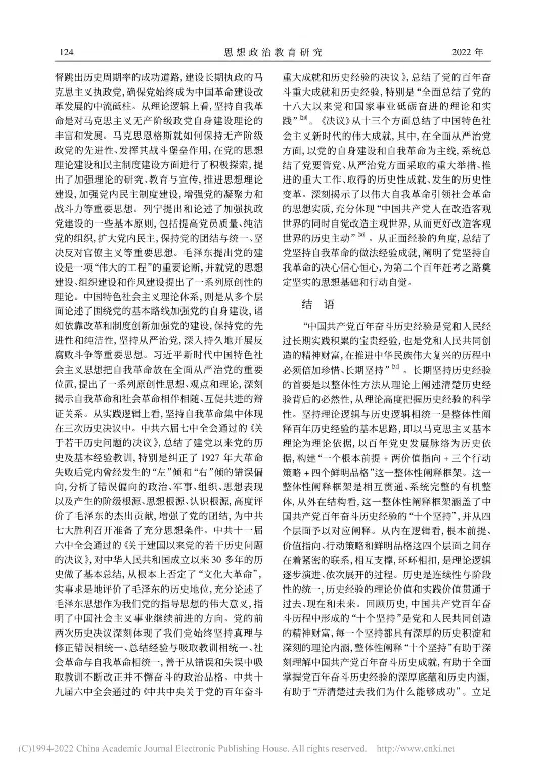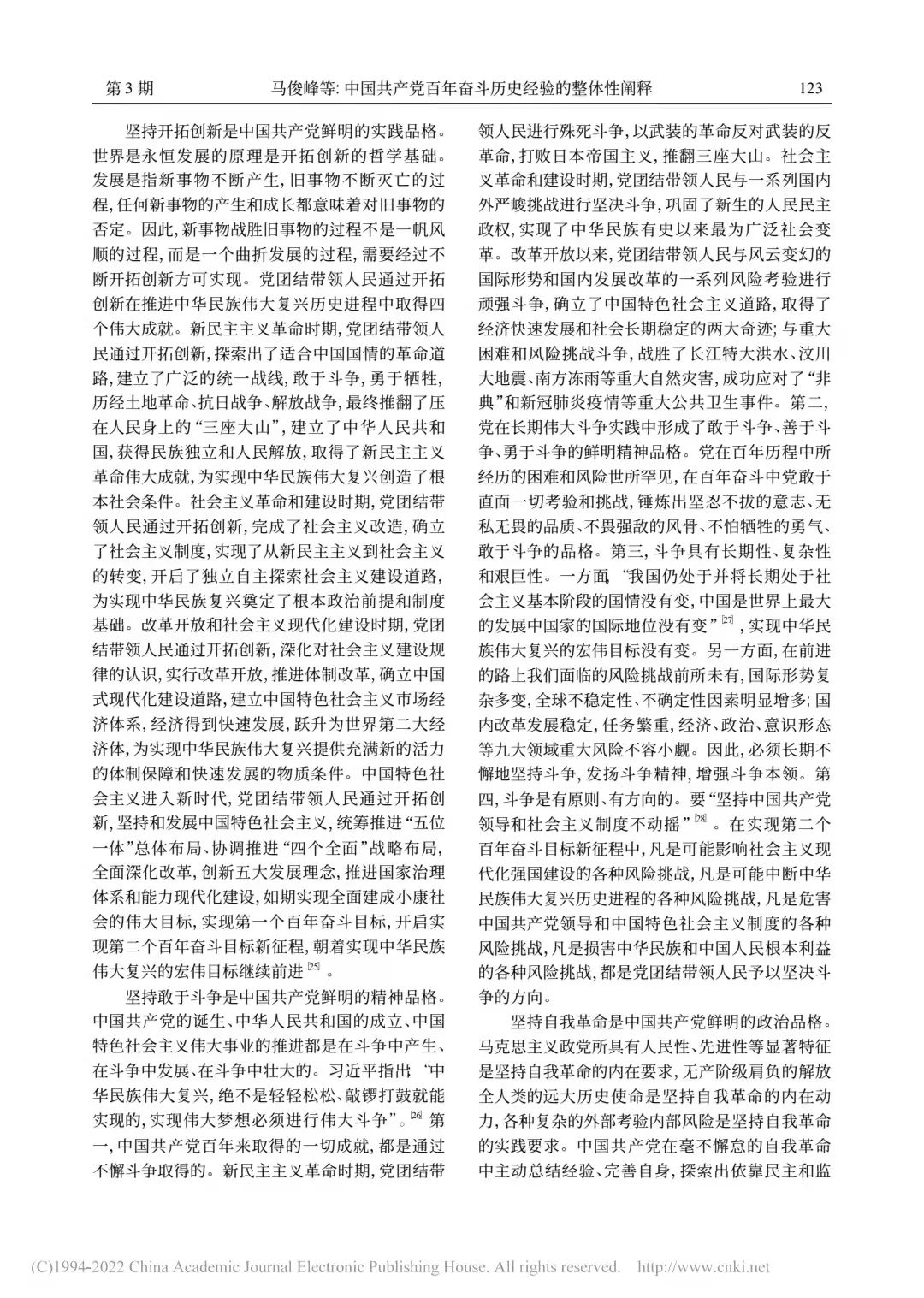 中国共产党百年奋斗历史经验的整体性阐释
