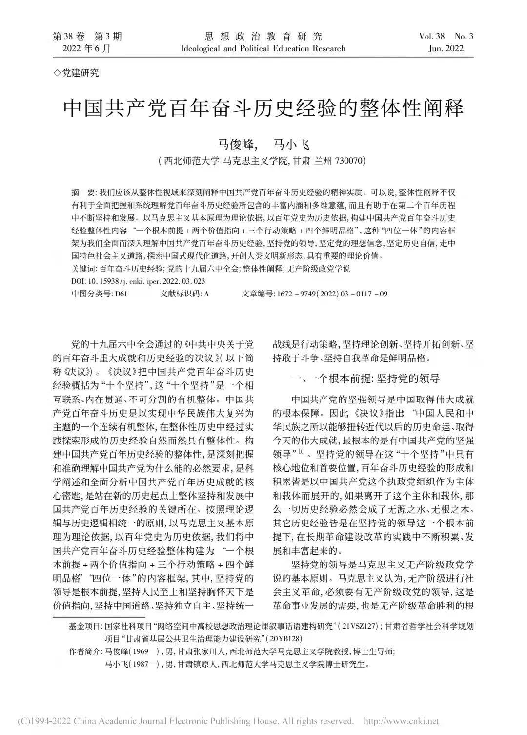 《思想政治教育研究》2022年第3期发表新葡萄8883官网AMG马俊峰教授文章《中国共产党百年奋斗历史经验的整体性阐释》。