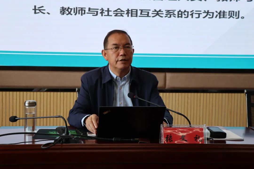 教育部师德师风建设基地(新葡萄8883官网AMG)常务副主任张文礼在 “强化师德师风治理,建设高素养师资队伍”的专题报告全面总结回顾了加强师德师风建设的政策背景,并结合生动的案例,为高校开展示范性师德教育,建设一支高素养的师资队伍提供了路径参考。
