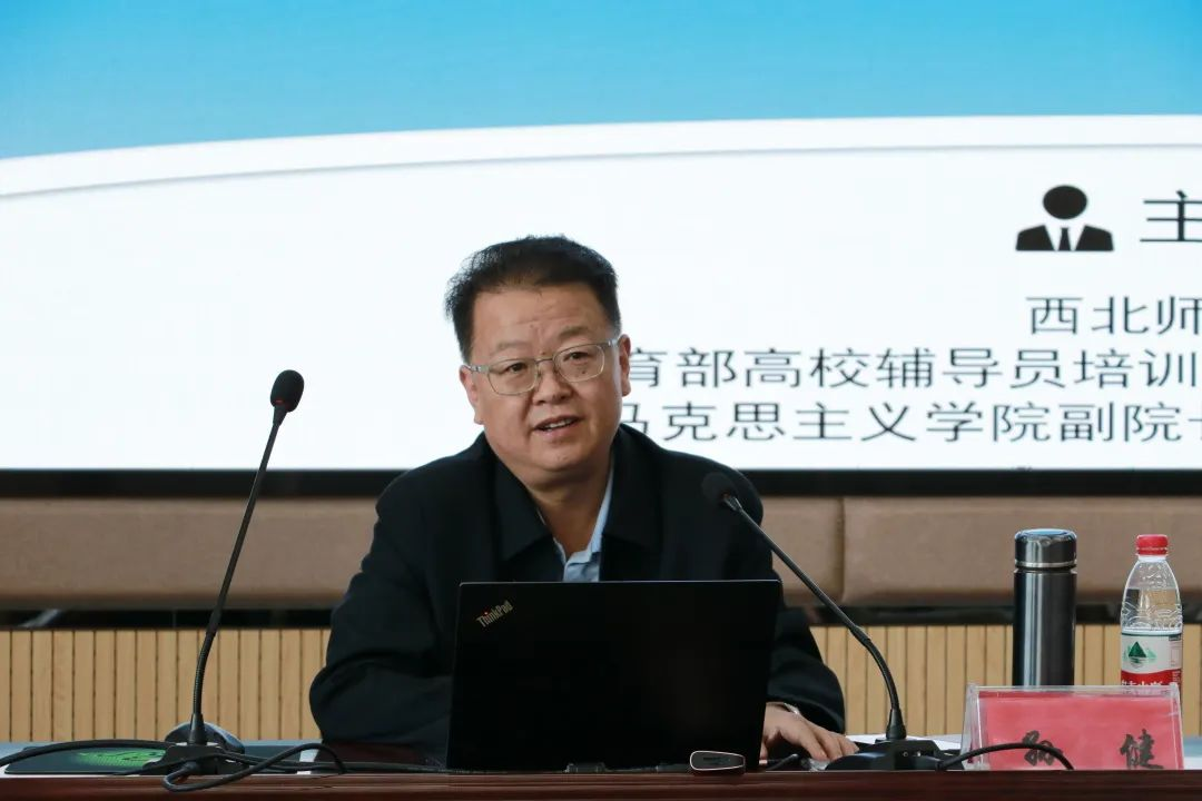 教育部高校思想政治工作队伍培训研修中心(新葡萄8883官网AMG)常务副主任孙健以“高校基层党组织书记思想政治工作中的沟通与协作”为题,分析了沟通与协作在进行思想政治工作中的重要性,以及基层党组织书记应该具备的沟通能力和技巧。