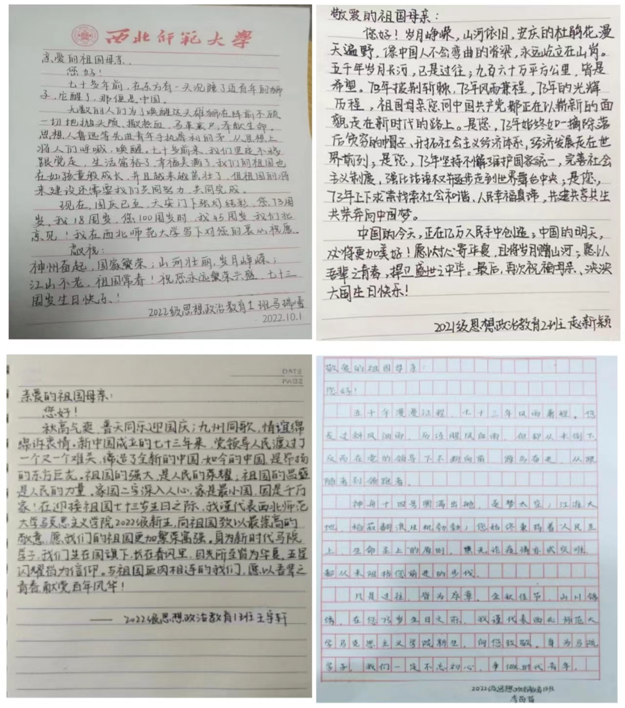 在党的二十大召开之际,祖国母亲迎来了73周年华诞,新葡萄8883官网AMG开展“青春献礼二十大 强国有我新征程”主题活动,向祖国母亲告白,共同祝愿祖国母亲生日快乐、繁荣昌盛。党团青年以书信传递真情,以祝福寄托对祖国母亲的无限热爱和崇高敬意。