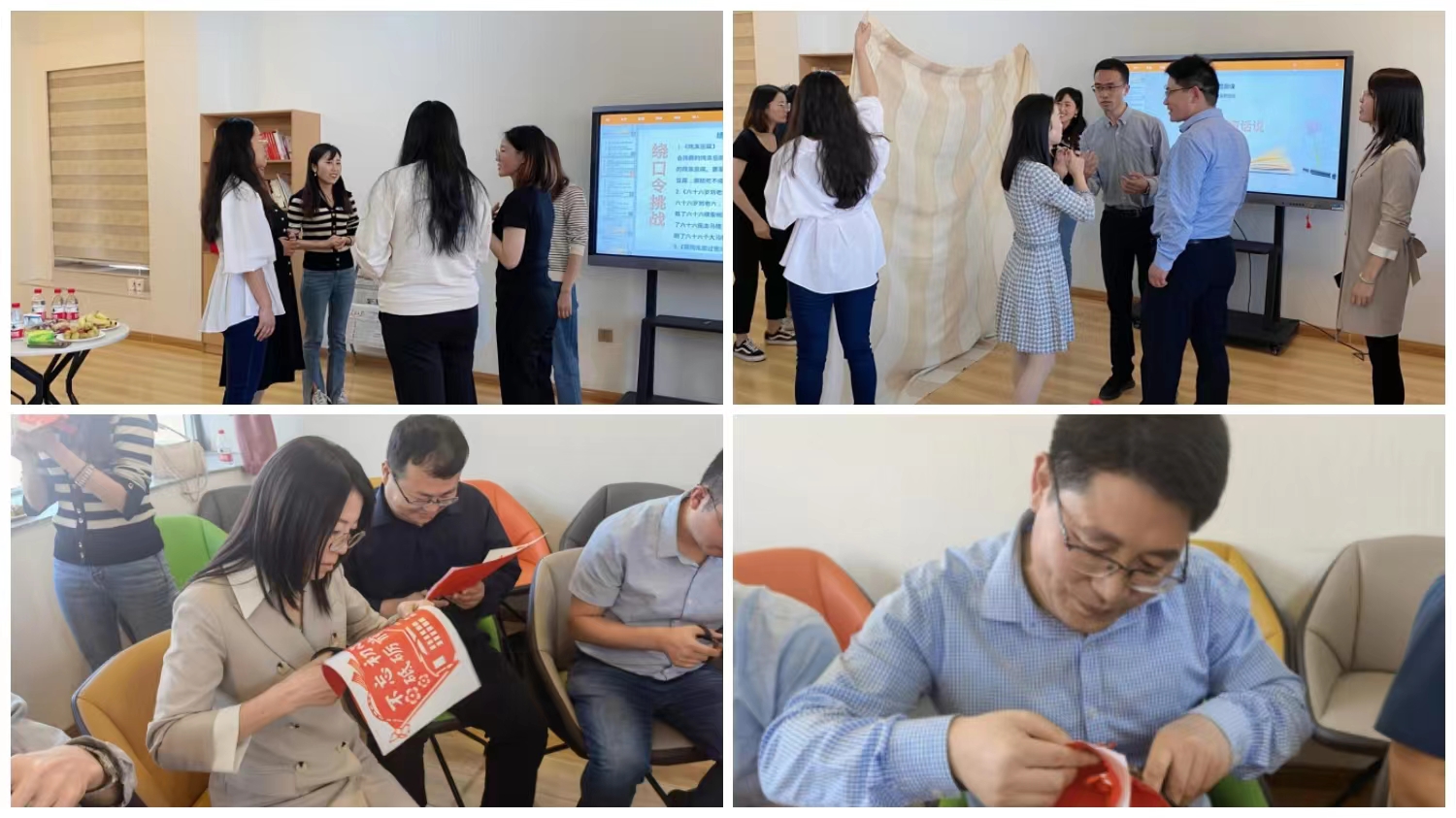 本次活动,我们迎来了轻松有趣的“青椒大家谈”环节,互动游戏“名字大作战”和“幸运大抽奖”将活动推至高潮。趣味横生的绕口令挑战、歌唱表演,伴随着欢声笑语,现场的气氛轻松且愉悦。临近祖国母亲的生日,我们为青年教师发放剪纸材料包,交流沟通中做着手工,以别样的方式为伟大的祖国献上真挚祝福。