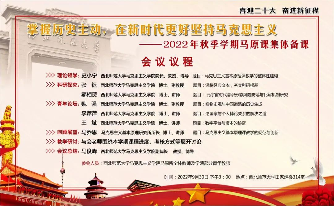 此次集体备课在党的二十大即将召开的重要节点开展,旨在继续深入对马克思主义理论,特别是21世纪的马克思主义的研究、阐发和传播,掌握历史主动,从而在新时代新征程更好坚持马克思主义,把马克思主义理论讲深、讲活、讲透,为德智体美劳全面发展的社会主义建设者和接班人夯实马克思主义理论基础。