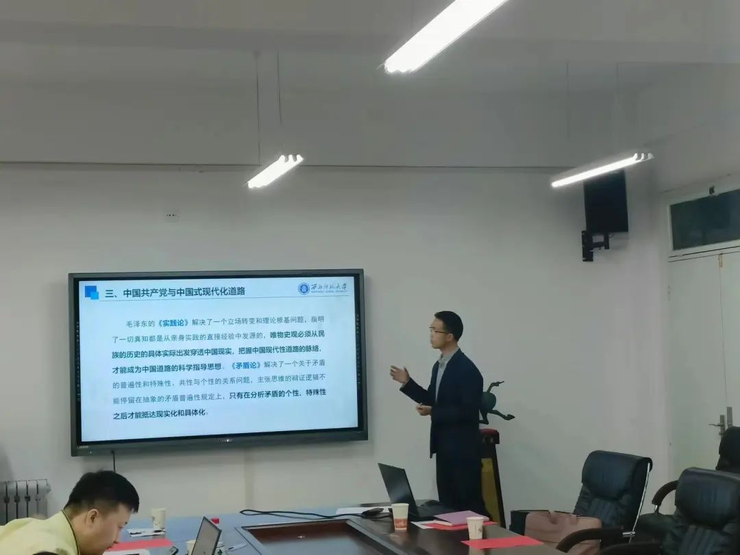 第四个环节为回顾与展望,由马乔恩所长向大家汇报马原所的人员构成、基本职能、排课情况、过去一年的成绩和未来一年的展望,特别是就新学期马克思主义基本原理课教学的规范与创新做了详细的说明,就教学过程中的注意事项做了强调。