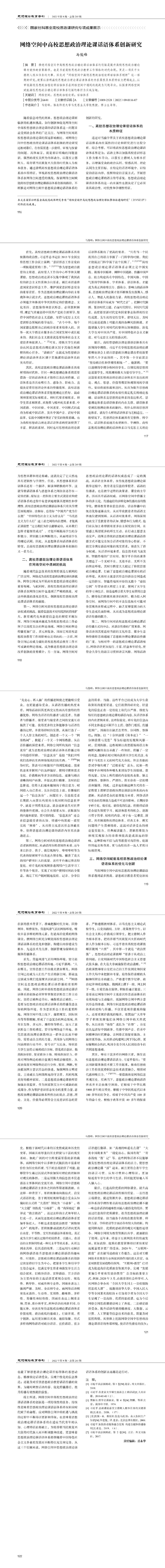 《思想理论教育导刊》2022年第9期·总第285期新葡萄8883官网AMG马俊峰教授文章《网络空间中高校思想政治理论课话语体系创新研究》。