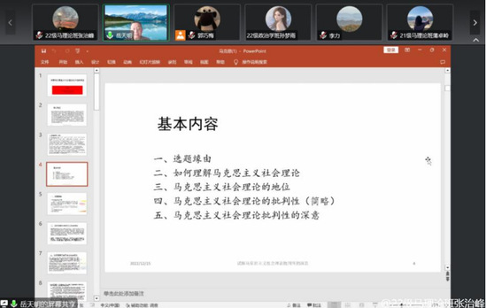 报告结束后,岳天明教授线上与参会师生互动交流并就提出的相关问题进行了深刻细致的解答。周方老师对本期“博导论坛”进行总结,指出岳天明教授的报告对我们理解和把握马克思主义社会理论的批判性具有较好的启发意义。