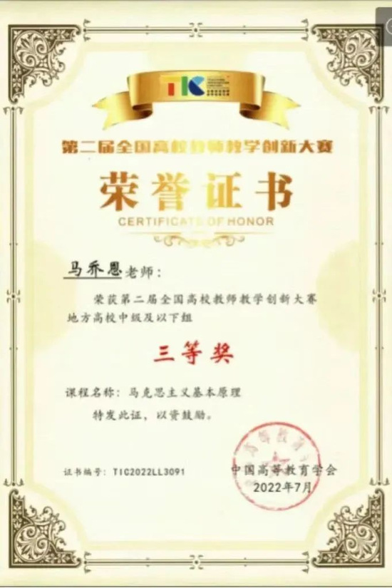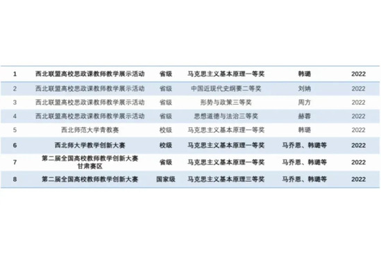 一是完善思政课集体备课制度,推进思政课教学改革创新。二是常态开展学院青年教师教学展示活动,积极组织教师开展各类教学竞赛。值得一提的是,2022年新葡萄官网在高校教师教学创新大赛中获得重大突破——马乔恩、韩璐等荣获第二届全国高校教师教学创新大赛三等奖。三是凝练“思政课实践教学链”成果,申报获批教育部“大思政课”实践教学基地。四是继续深化“一主多元”卓越思政课教师一体化培养理论与实践探索。