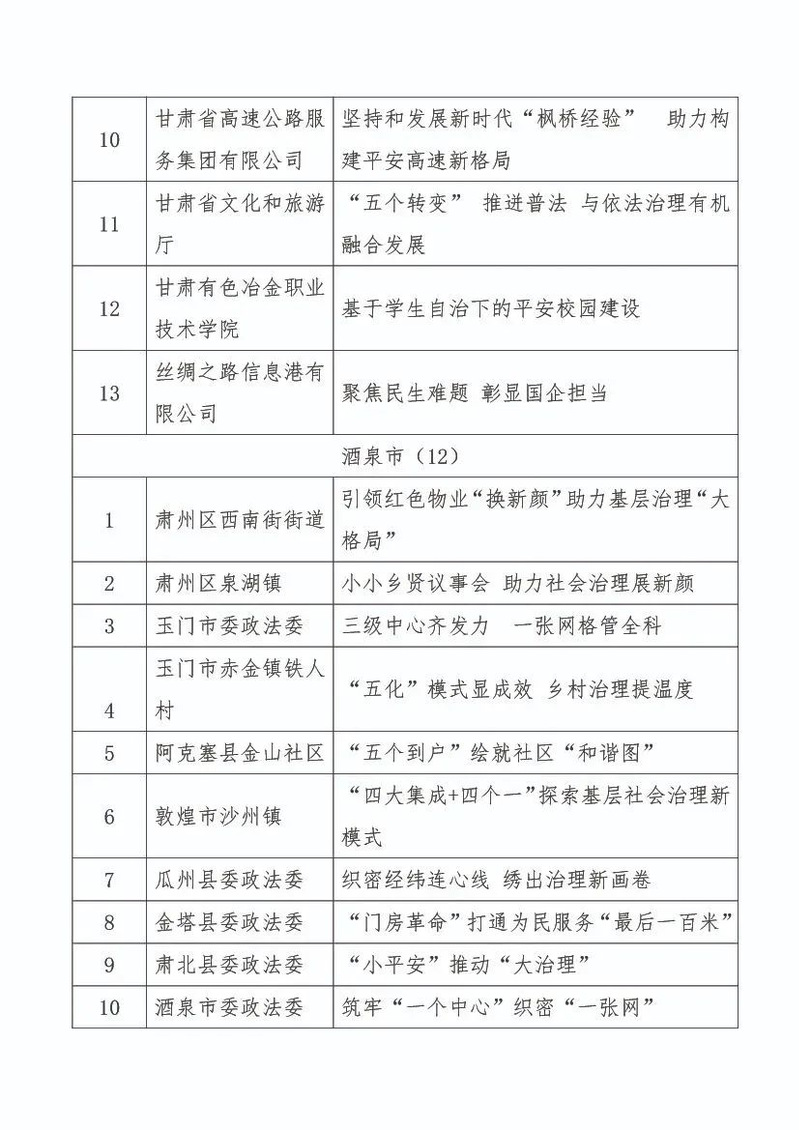 甘肃省市域社会治理创新实践十大精品案例名单公布