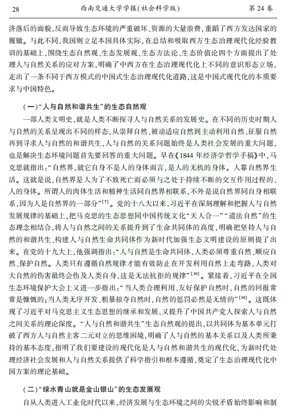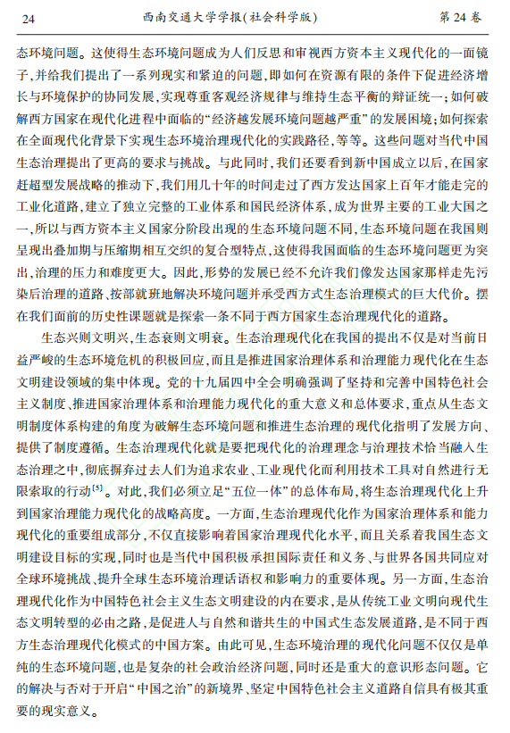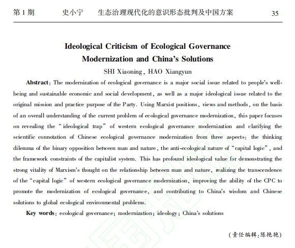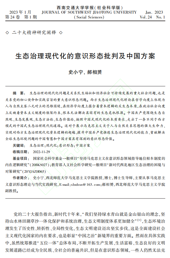 《西南交通大学学报》(社会科学版)2023年第1期发表新葡萄8883官网AMG教授史小宁文章《生态治理现代化的意识形态批判及中国方案》。
