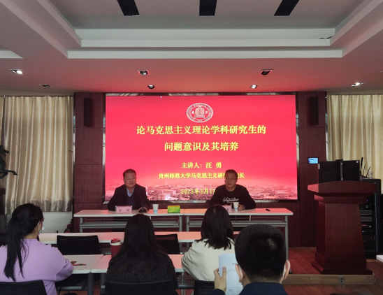 汪勇教授围绕马克思主义理论学科研究生的问题意识及其培养这一主题,从近些年马理论学科及其研究生的基本情况出发,以学生的科研选题为例,从马克思主义理论学科研究生的问题的重要性及其意义进行了精彩而又详细的讲解。汪教授指出,马克思理论学科研究生问题意识存在的问题主要体现在发现问题的意识不强、分析问题的意识不强、解决问题思考不全面等方面,并对存在的这些问题提出了相应的对策建议,拓展了研究生的研究视野,有助于提高研究生的科学研究能力。