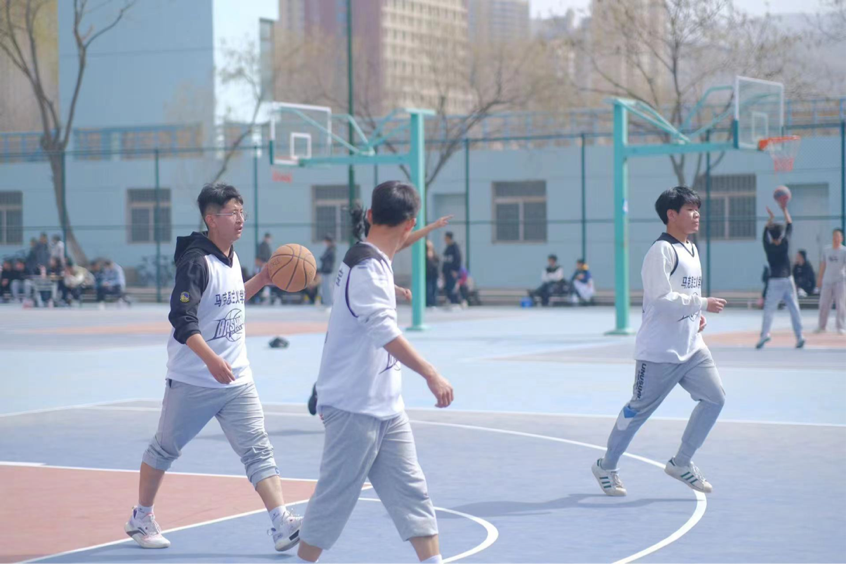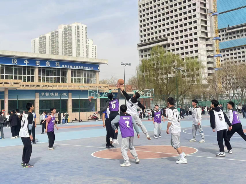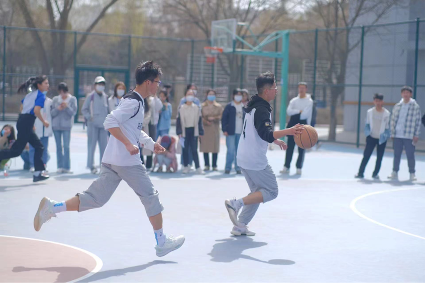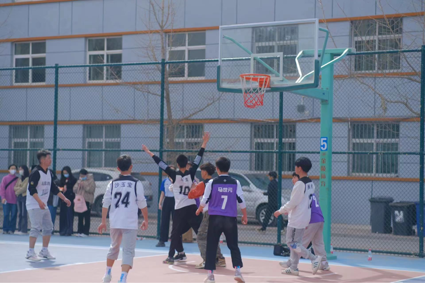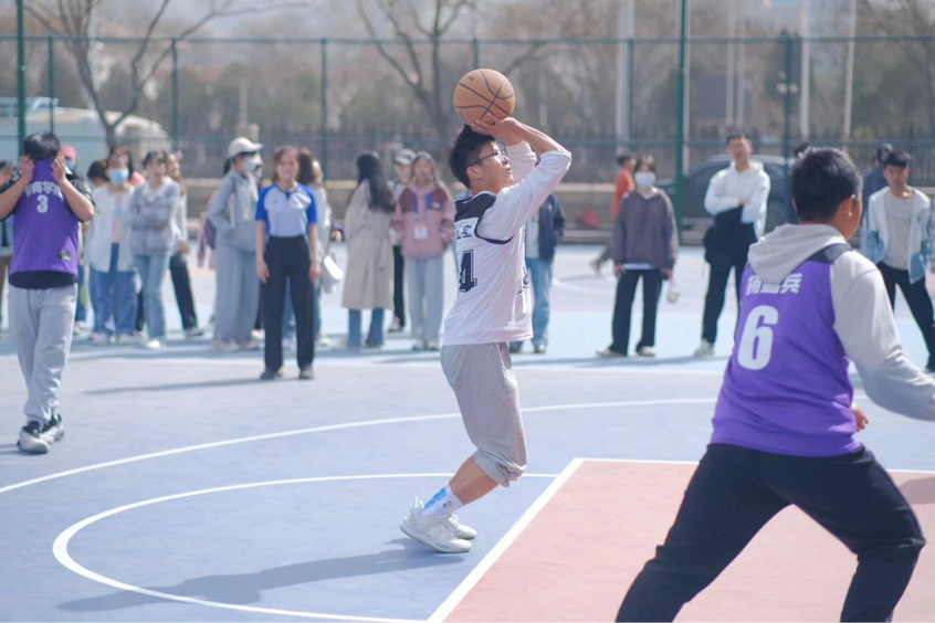 投篮时一次次的跳跃,拼尽全力,酣畅淋漓,热血沸腾。场下的呐喊是对他们拼搏的肯定,所有的汗水都在掌声中涌动。