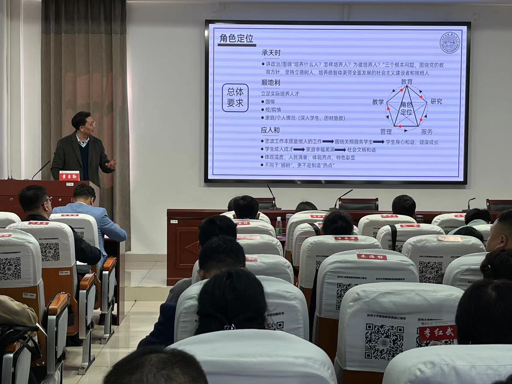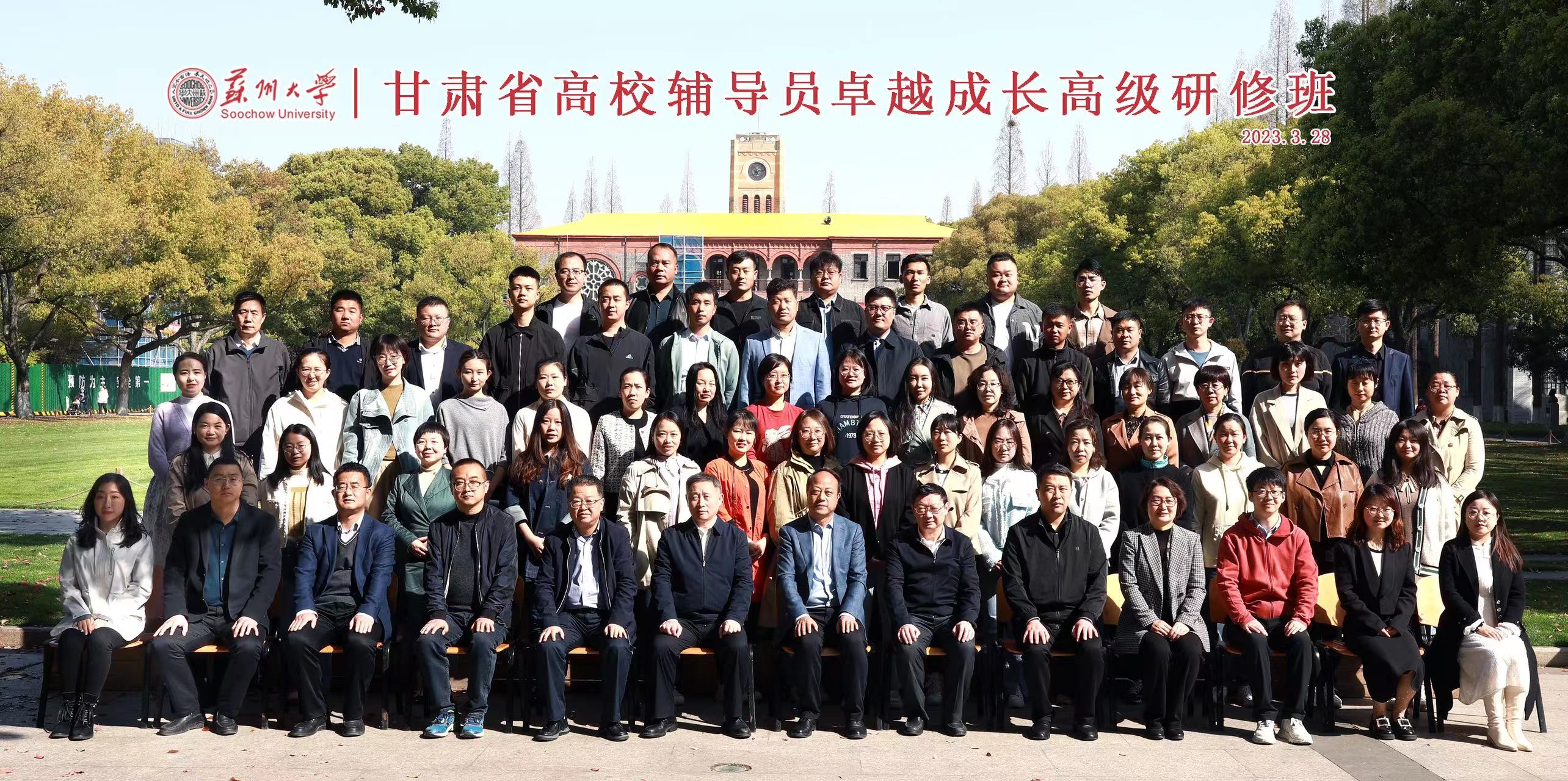 3月27日-4月2日,由甘肃省委教育工委主办,教育部高校思想政治工作队伍培训研修中心(新葡萄8883官网AMG)承办,苏州大学新葡萄8883官网AMG培训研修基地协办的“甘肃省高校辅导员卓越成长高级研修班”在苏州大学举行。甘肃省60余名高校辅导员围绕新时代高校辅导员的使命与担当、大学生日常思想政治教育、高校共青团工作、“一站式”学生社区建设管理、爱国主义及师德师风建设等内容,开展了为期七天的培训学习和实践研修活动。