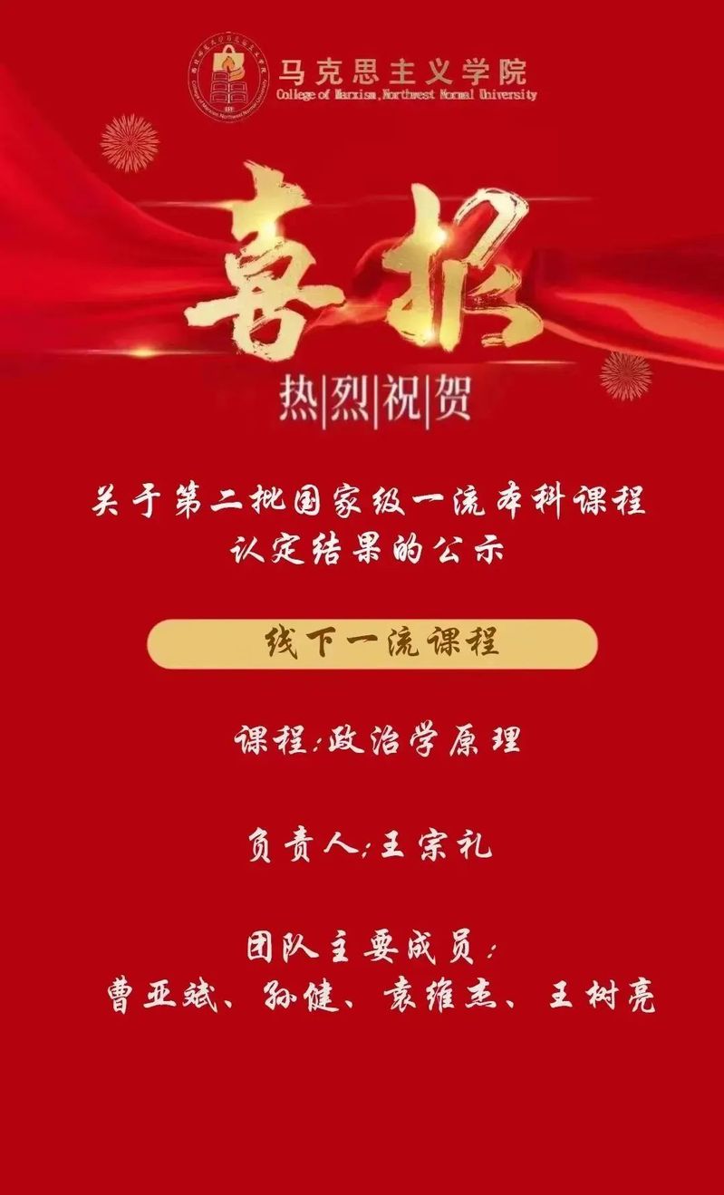 近日,在中华人民共和国教育部发布的《关于第二批国家级一流本科课程认定结果的公示》中,新葡萄官网开设的《政治学原理》课程,被认定为线下一流课程。