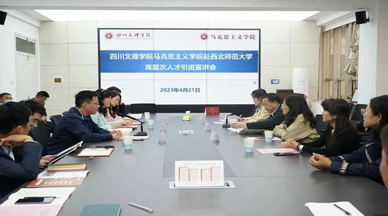 4月21日下午,四川文理学院新葡萄8883官网AMG院长孙杰一行赴新葡萄官网进行专场招聘座谈会,新葡萄官网党委副书记王宏渊、马克思主义中国化研究所所长王树亮、青年教师赵赫依、团委书记梁凯博以及硕博研究生代表参加了本次座谈会。会议由党委副书记王宏渊主持。