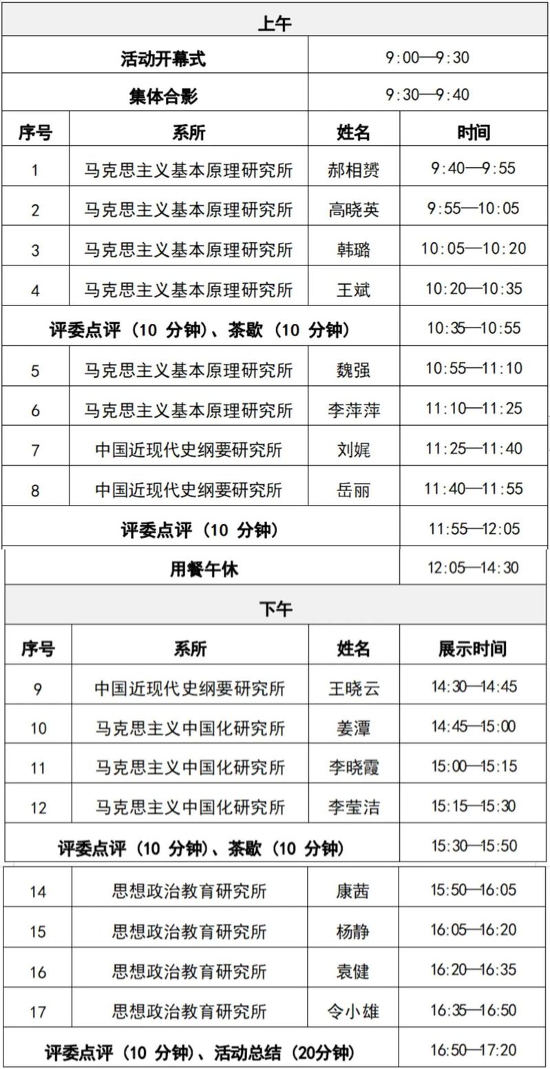 一是教学展示(10-12分钟)。参与活动的青年教师须完成1个片段教学设计、1个教学节段的PPT、以及现场授课内容。活动当日,将由评委督导从教学内容、教学组织、教学语言与教态、教学特色等方面进行点评指导。
