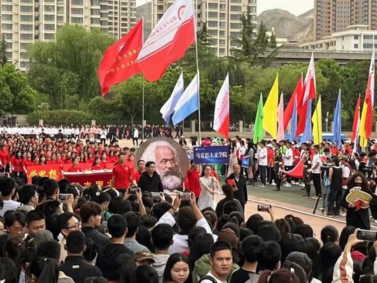 开幕式上,新葡萄8883官网AMG师生高举马克思头像,唱响“言马信马、意气风发,铿锵马院,不负韶华”的嘹亮口号,迈着整齐而坚定的步伐,昂扬地步入体育场。学生身着中国红,摇动着手中的小红旗,彰显新葡萄8883官网AMG深厚的红色底韵,展现了马院学子对真理的追求和对信仰的坚守。马院师生队伍组成的方阵富有马院特色,形式新颖,充分展现出新时代马院人特有的精神风貌。