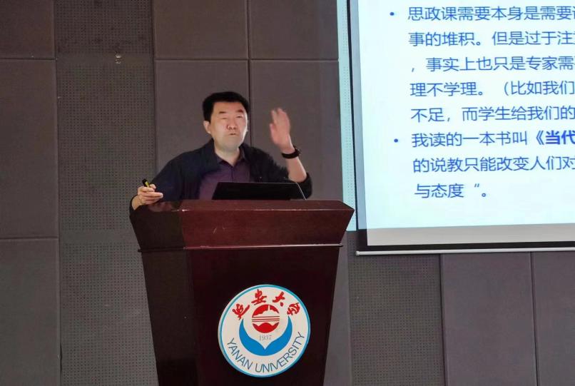 延安大学王东维教授作了《延安时期思想政治教育的历史经验》的专题报告。他从延安时期思想政治教育的历史背景、延安时期开展中国共产党政治教育开展的具体做法讲起,总结出了延安时期思想政治教育的历史经验及启示。