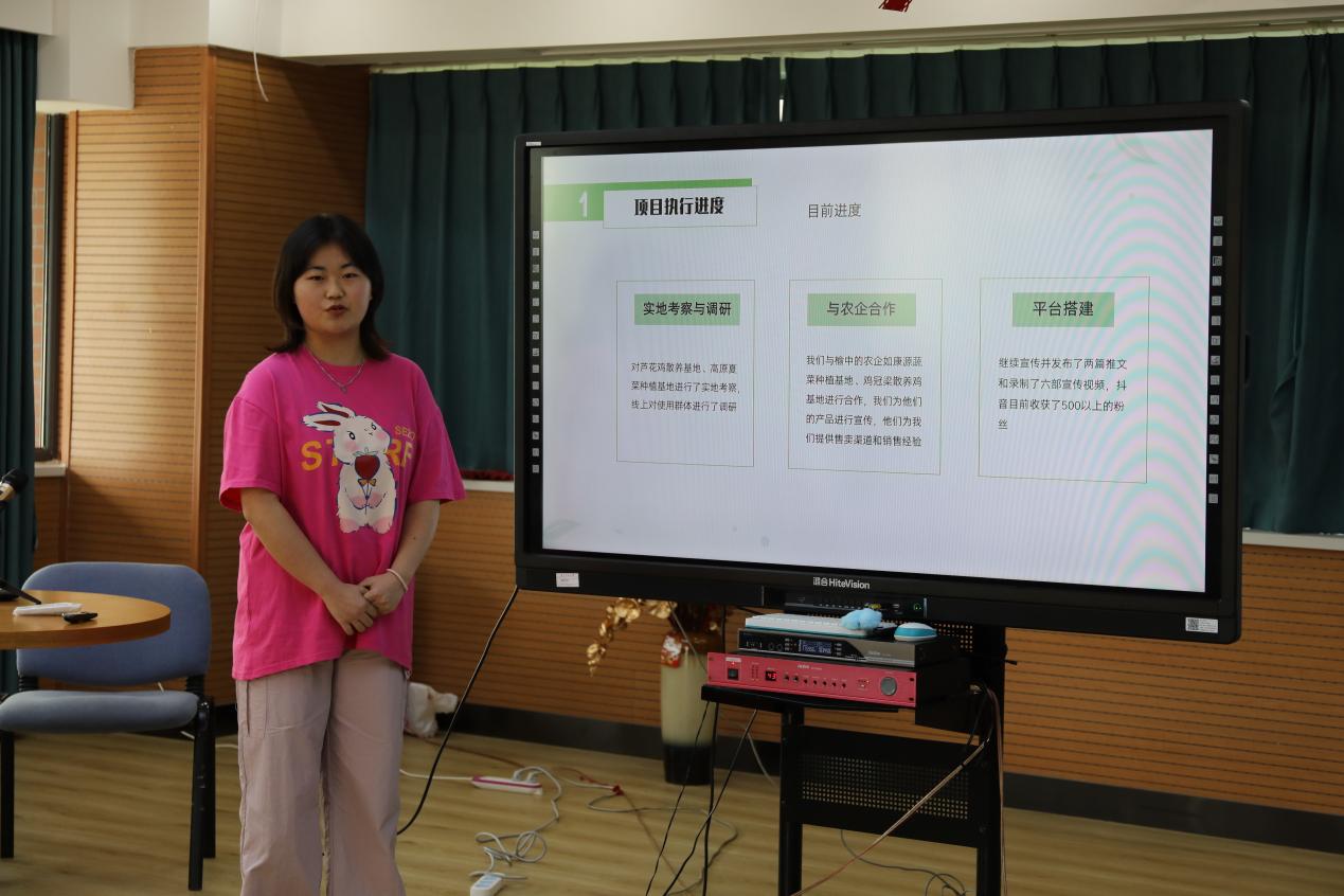 分享过程中,各项目负责人通过PPT的形式展示该小组的项目背景、项目优势、预期效果以及项目意义等方面相关内容,评委老师根据负责人的选题及报告对该项目进行指导与提问,各项目负责人根据研究报告及相关知识对提问给予回答。评委老师在充分肯定负责人现场表现的基础上对项目进行了客观评价,指出不足并提出宝贵意见。