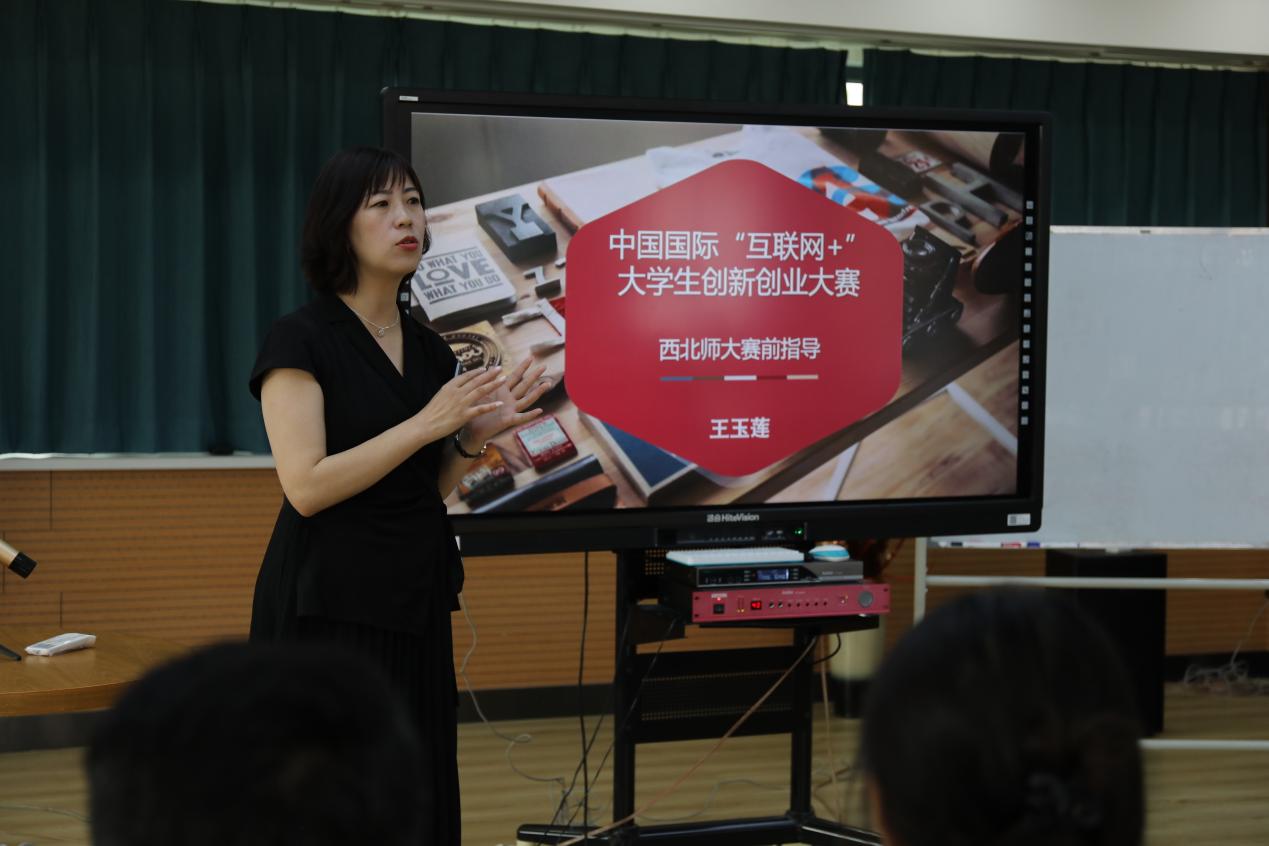 王老师着重强调答辩环节应注重内容的精良、作品相关材料的制作精美、答辩时语言的流畅精简,并介绍了“互联网+”大赛的举办背景及其重要地位,讲解了各赛道项目的要求与评审要点,并结合往年获奖项目,详细讲述了复赛PPT制作、路演等环节的注意事项与评审要点。