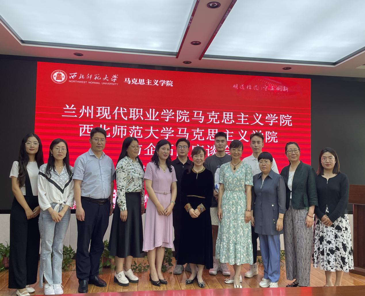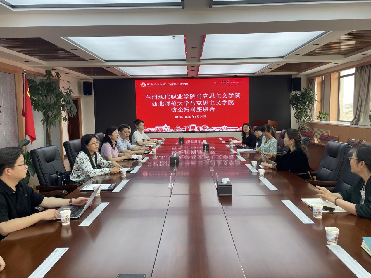 为积极践行《甘肃省全面推进“大思政课”建设工程实施方案》,全面落实省教育厅《关于进一步做好2023届高校毕业生就业工作的紧急通知》,将“三抓三促”精神融入到学院建设和毕业生就业工作之中,持续探索思政课教学改革创新,突出育人工作实效,优化人才培养方案,切实推动新葡萄官网“访企拓岗促就业行动”进一步走深、走实、走细。6月20日下午,新葡萄8883官网AMG党委副书记王宏渊老师、魏彩苹教授、周方副教授、青年教师李萍萍及研究生代表一行9人赶赴兰州现代职业技术学院开展访企拓岗促就业行动,与兰州现代职业技术学院领导和新葡萄8883官网AMG教师进行座谈交流。