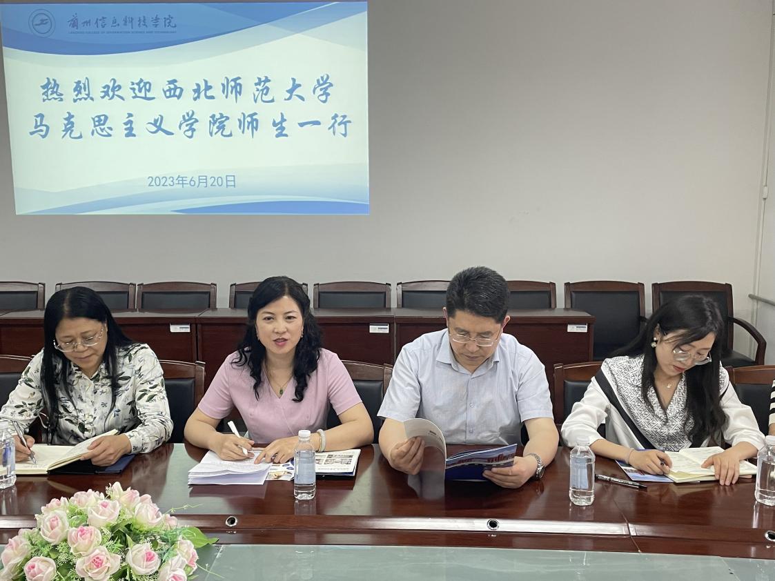 为促进新葡萄官网学生高质量实习就业,拓宽毕业生就业渠道和资源,6月20日下午,马克思是主义学院党委副书记王宏渊、形势与政策研究所所长周方、魏彩苹教授、青年教师李萍萍、辅导员张婷及研究生一行9人前往兰州信息科技学院开展访企拓岗工作。