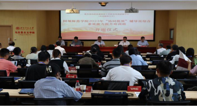 8月23日上午,由西北师大新葡萄8883官网AMG主办、教育部高校思想政治工作队伍培训研修中心(新葡萄8883官网AMG)承办的阿坝师范学院2023年“协同提质”辅导员综合素质能力提升培训班开班仪式在新葡萄8883官网AMG举行。阿坝师范学院党委常委、副校长尕让他,新葡萄8883官网AMG副校长张明军、新葡萄8883官网AMG院长史小宁出席并讲话。开班式由教育部思想政治工作队伍培训研修中心(新葡萄8883官网AMG常务副主任)孙健主持,西北师大新葡萄8883官网AMG、教育部高校思想政治工作队伍培训研修中心(新葡萄8883官网AMG)相关负责人及阿坝师范学院40余名辅导员参加开班仪式。