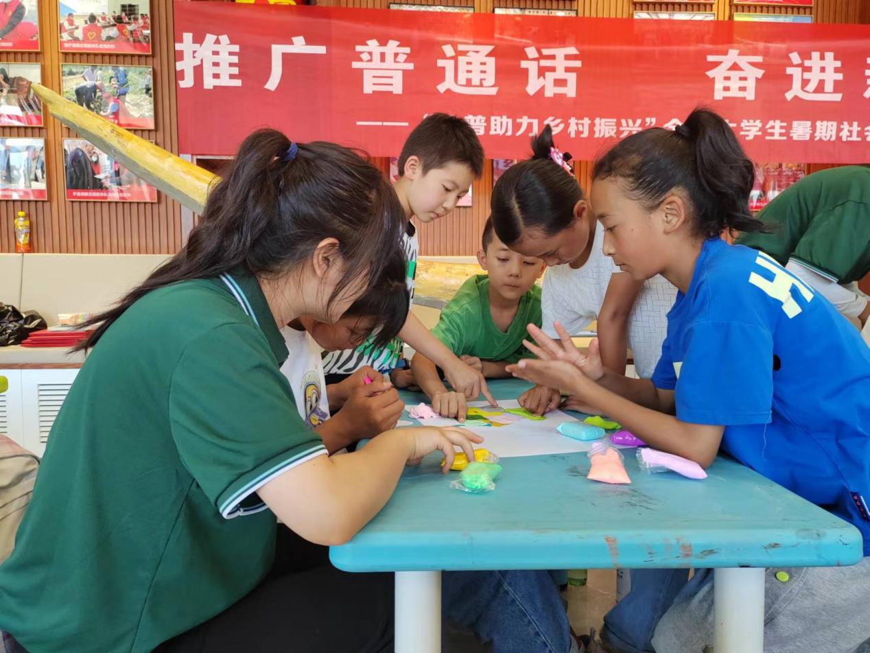 本次推普活动与博物馆的暑期青少年研学活动融为一体,取得了良好的效应。志愿者在活动过程中注重将普通话的推广与东乡族的民族文化传承结合起来,精心设计了“小小解说家、童声颂伟业、黏土绘临夏”等系列主题活动,寓学于乐,推普队的同学们一对一耐心地纠正孩子们的读音,提高他们的普通话水平。推普队的队员还深入东乡县福利院开展结对帮扶活动,给那里的孩子带去丰富多彩的文化活动,弘扬中华民族尊老爱幼的优良传统。文化的传承发展要从娃娃抓起,推普队的活动在孩子们的心中播下了中华文化认同的种子,从小构筑中华民族共同体意识。书同文、语同声,文化同源,幸福同步,让每一个民族的优秀文化、每一代个人的青春和智慧都融入中华民族现代文明建设中,闪闪发光。
