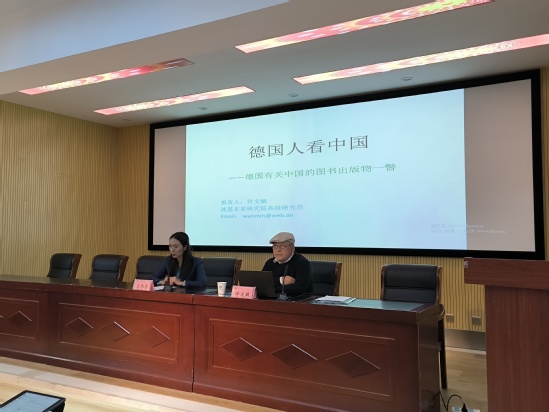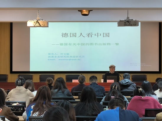 10月12日下午,应新葡萄8883官网AMG邀请,原德国波恩东亚研究院常务院长许文敏在新葡萄8883官网AMG6楼学术报告厅为新葡萄官网师生作了题为《德国人看中国——德国有关中国的图书出版物一瞥》的学术讲座。本次讲座由新葡萄8883官网AMG副院长马乔恩主持。