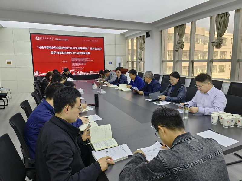 2023年10月26日上午,新葡萄8883官网AMG于田家炳教育书院410会议室召开“习近平新时代中国特色社会主义思想概论”集体备课会暨学习贯彻习近平文化思想座谈会。院长史小宁教授、习近平新时代中国特色社会主义思想概论研究所全体教师、学院各研究所教师代表参加会议。会议由王树亮副院长主持。