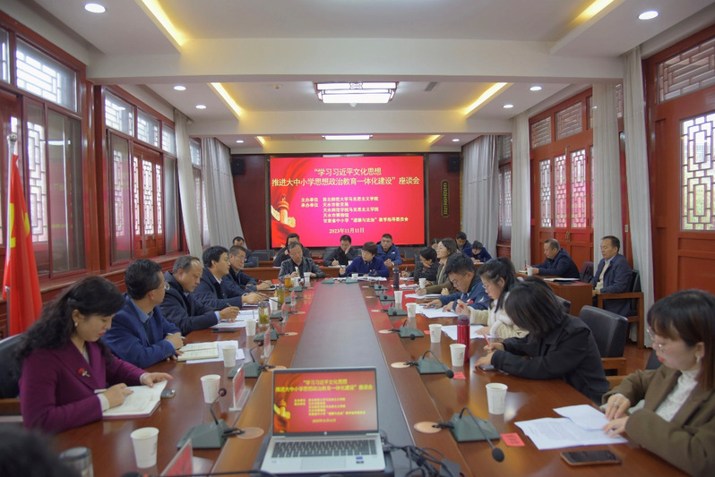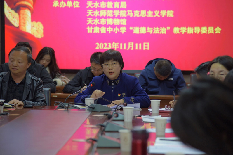 主题研修结束后,“学习习近平文化思想 推进大中小学思想政治教育一体化建设”座谈会在天水市博物馆畅和轩会议室召开。