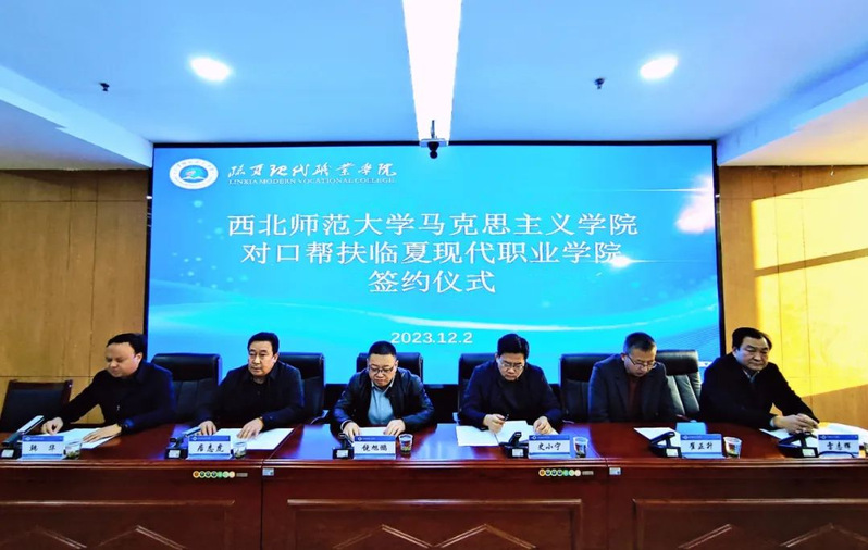 12月2日,新葡萄8883官网AMG对口帮扶临夏现代职业学院新葡萄8883官网AMG签约仪式暨《习近平新时代中国特色社会主义思想概论》集体备课会,在临夏现代职业学院举行。临夏现代职业学院党委书记居志虎、院长雷志辉,新葡萄8883官网AMG院长史小宁、副院长王树亮,兰州理工大学新葡萄8883官网AMG院长饶旭鹏,甘肃交通职业技术学院新葡萄8883官网AMG党支部书记王旭、院长杨海晖,白银矿冶职业技术学院党委委员、副院长崔正生,甘肃林业职业技术学院新葡萄8883官网AMG副院长常文峰,陇南高等师范专科学校新葡萄8883官网AMG教师王文君、肖红旗,临夏现代职业学院领导班子成员及全体思政课教师,临夏市中小学思政课教师代表等80多人参加。签约仪式由临夏现代职业学院党委副书记韩华主持。