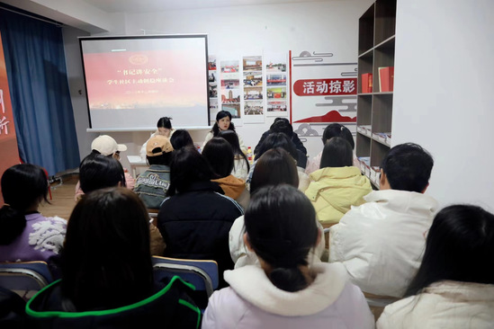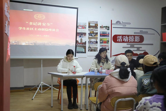 为进一步加强“一站式”学生社区综合管理模式建设,充分发挥学生公寓文化育人功能,提高学生“自我管理、自我服务、自我教育、自我监督”的水平,营造安全、和谐、文明的宿舍环境,新葡萄8883官网AMG于2023年12月4日在兰天公寓四号楼105活动室举行“书记讲安全,学生社区主动创稳”座谈会。参加本次座谈会的有学院党委副书记王宏渊、学院本科生第一党支部书记梁凯博、辅导员闫婧及部分学生骨干和宿舍长代表。