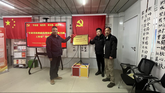 在揭牌仪式上,马俊峰教授与兰州交通大学附属小学书记刘巍、校长陈可立共同为马俊峰名师工作室在兰州交通大学附属小学工作站揭牌。