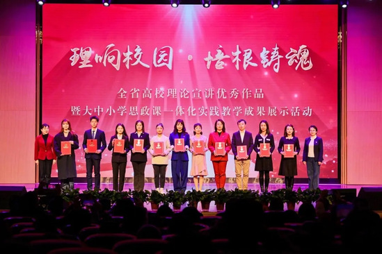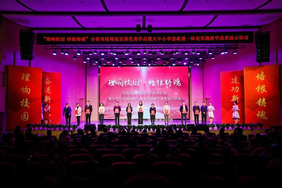 “理响校园·培根铸魂”,沐浴新时代的真理光辉,感受习近平新时代中国特色社会主义思想的磅礴伟力,全省高校广大师生正在奋发图强、砥砺前行。活动过程中,还为全省高校理论宣讲作品征集评选展示活动——理论宣讲报告类和宣讲微视频类获奖作品的代表进行现场颁奖;同时颁发了全省高校理论宣讲作品征集评选展示活动中的优秀组织奖。