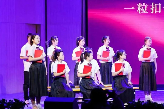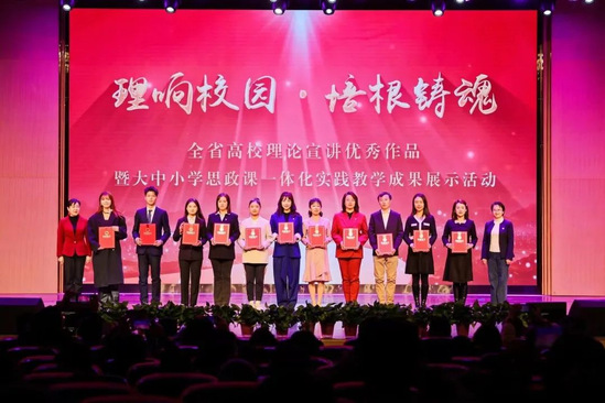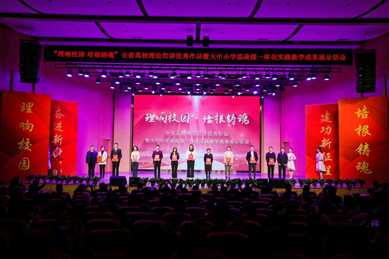 在“理响校园·培根铸魂”全省高校理论宣讲优秀作品暨大中小学思政课一体化实践教学成果现场展示活动中,新葡萄官网张成恩、李莹洁老师主演的理论宣讲报告《沿着总书记足迹 学思践悟新思想》以及高晓英、朱荣康老师主演的情景思政课《我们》受邀进行现场展示。两部作品分别讲述了新时代十年发生在甘肃大地上的伟大变革以及黄河之滨的美好新生活,发出“强国一代有我在”的奋进之声,充分展现出新葡萄官网青年教师的创新能力和综合素质。现场演出将一场场生动、深刻的“思政课堂”带上舞台,真正做到培根铸魂,启智润心,获得了全场观众的肯定和掌声。