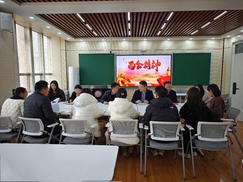 为推进“两会”精神融入课堂教学,聚焦“两会”热点话题,围绕“两会”专题怎样纳入课堂进行集体备课,以使得学生的理论学习更贴合实际、贴合生活,也让“两会”精神更加入脑入心。马克思主义中国化研究所教师党支部书记王树亮介绍马克思主义中国化研究所教师党支部基本情况,并希望全体党员教师在自己的岗位上创新开展工作,为学院发展贡献力量。