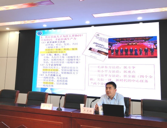 燕连福教授以习近平总书记关于“新质生产力”重要论述的历史发展脉络导入,以“以教育科技人才协同建设推动新质生产力发展”为题,重点从劳动力、劳动工具、劳动对象、科学技术革命性突破、生产要素创新性配置、产业深度转型升级、党的百年征程、世界强国崛起历程,深入阐释了教育科技人才协调建设与新质生产力“同频共振”的重要原因与核心要义,分析了什么是新质生产力、为什么要发展新质生产力、怎样发展新质生产力等问题。此外,燕连福教授还从教育聚焦“四先”让新质生产力抢占先机、科技聚焦“四强”让新质生产力提高成色、人才聚焦“四新”让新质生产力底色十足等三个方面,分享了自己对如何以教育科技人才协同建设推动新质生产力发展的深入思考。